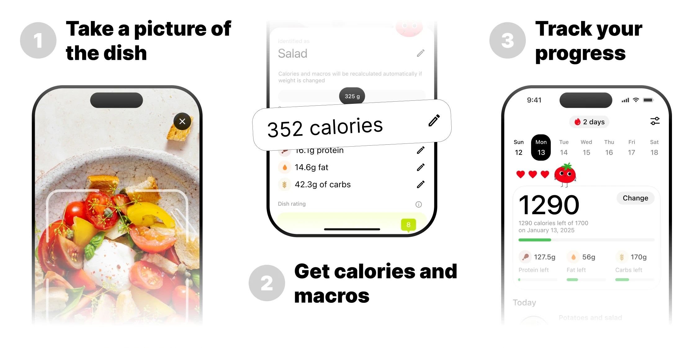 Home-cooked meals, restaurant menus or quick snacks - AI will count the calories and nutrients for you. No fuss - whether you’re at home, in the office or on the go.